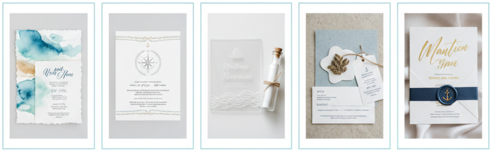 - Unique Formats: Message‑in‑a‑bottle invitations, acrylic cards with etched wave patterns, or map‑themed save‑the‑dates stand out.