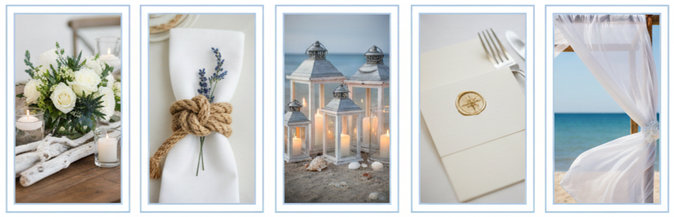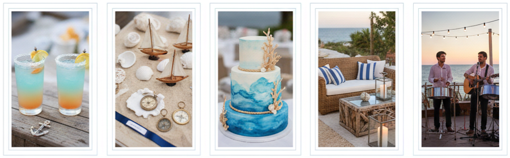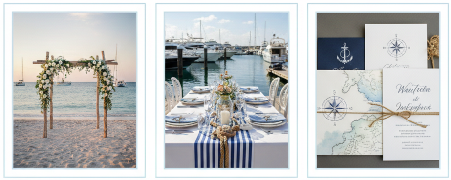 Stick to subtle décor, natural materials, and ocean‑inspired colors. Focus on elegant touches rather than oversized props or overly bright nautical items.