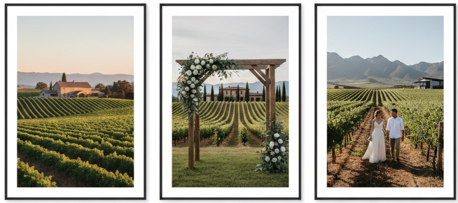 | Vineyards | Scenic views, natural elegance | Couples wanting a romantic wine-country atmosphere |
