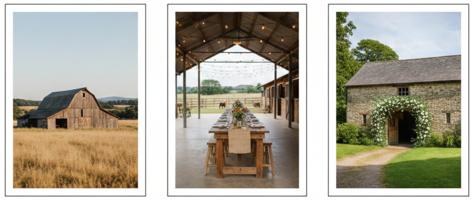 | Barns & Ranches | Authentic rustic charm | Couples who want a classic country feel |