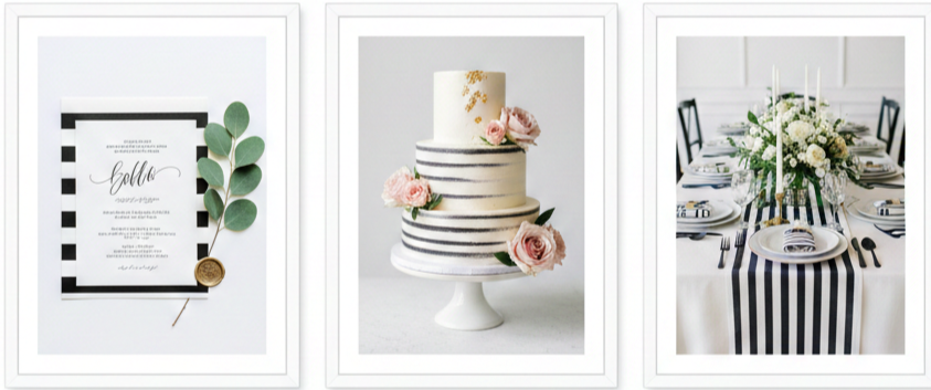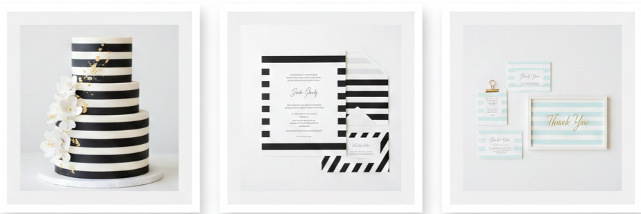 Your cake and invitation suite are great opportunities to make stripes part of your visual story. These elements photograph well and set the tone for the overall event.