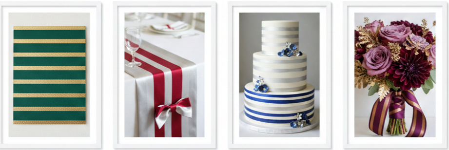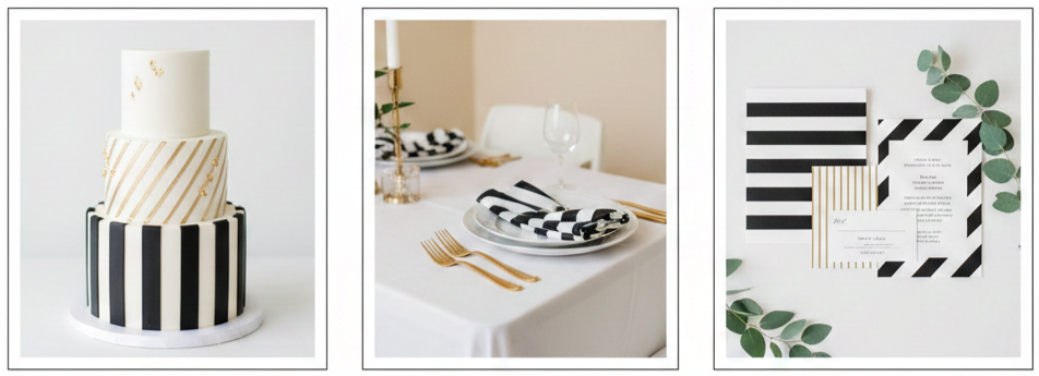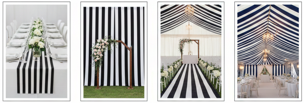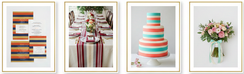 - Mix Widths and Directions: Changing stripe width or direction adds variety without clashing. You might choose vertical stripes for the ceremony and horizontal ones for stationery to keep things visually interesting.