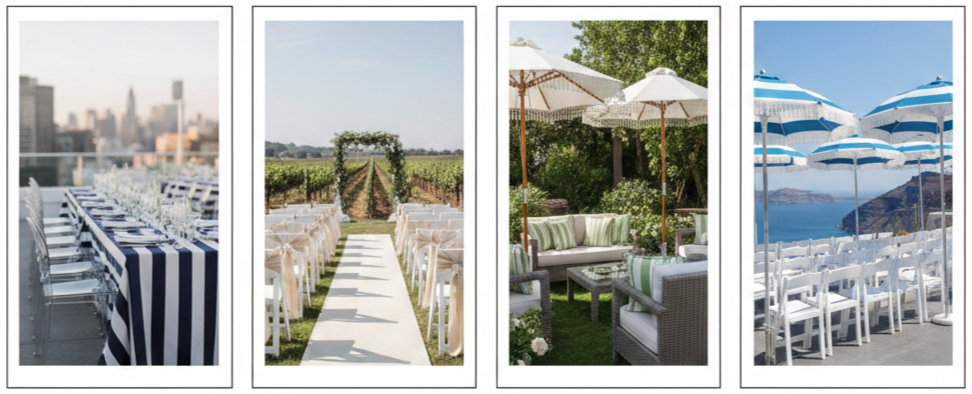 Garden weddings have used striped lounge cushions or parasols to play off natural surroundings. Couples in Santorini even used blue-and-white striped umbrellas to create a unified, photo-ready setup that also provided shade. No matter the style or location, stripes brought personality and cohesion.