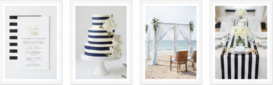 Stripes are incredibly flexible when it comes to color. The pairing you choose shapes the mood and helps guide the visual direction of your wedding.