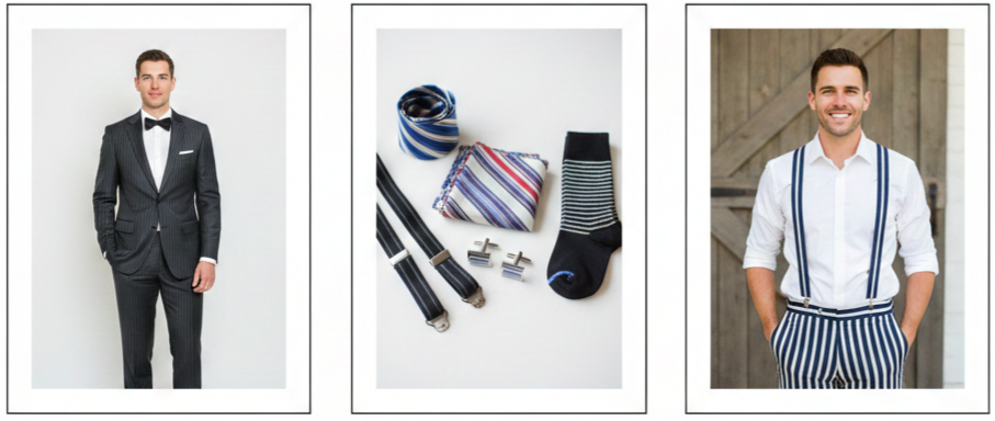 | Groom’s Attire | Pinstripe suits or striped accessories |