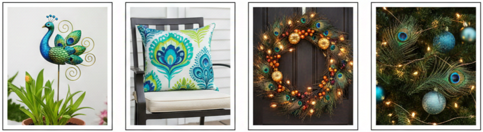 - Spring and summer touches: Use outdoor items like peacock-themed garden stakes or wind chimes. Add printed cushions to your patio furniture, or fill a terrarium with teal and green stones to echo the colors of the feathers.