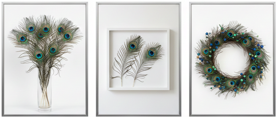 Feathers are the heart of peacock decor. They’re full of color, texture, and a natural design that instantly stands out. Whether you use real or faux feathers, there are plenty of ways to work them into your space.