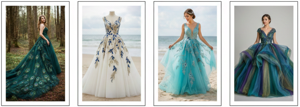 - Etsy Creators: Many talented dressmakers on Etsy offer peacock-inspired gowns or can customize existing designs.