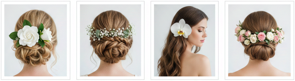 Brides all over the world embrace flowers in their hair, bringing in personal meaning, cultural traditions, or simple style choices. Some brides lean into tropical themes by using orchids, while others opt for tiny daisies woven through braids for a whimsical feel. Winter brides often choose camellias or roses for their structure and longevity. Stylists usually recommend using fresh blooms for daytime ceremonies and faux versions for nighttime receptions to maintain the look without worrying about wilting.