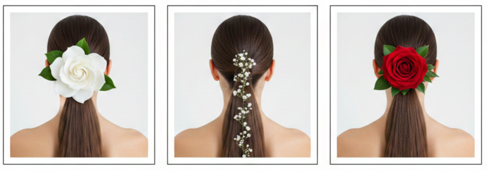 Hair flowers may feel delicate, but keeping them secure isn’t hard when you use the right techniques. Before placing anything in your hair, it helps to add texture with dry shampoo or texture spray, especially if your hair is naturally silky or freshly washed.