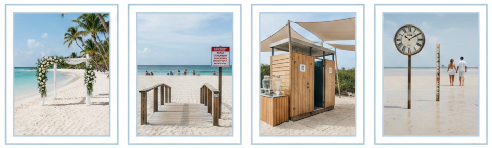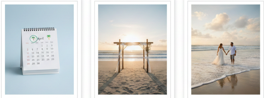 - Photography tips: Work with someone who has experience shooting at beaches. Timing the photos during golden hour gives you the best natural lighting.