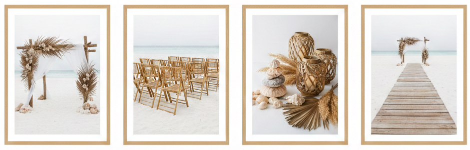 Designing your beach wedding setup means dealing with the elements—sand, wind, and sunlight.