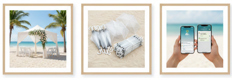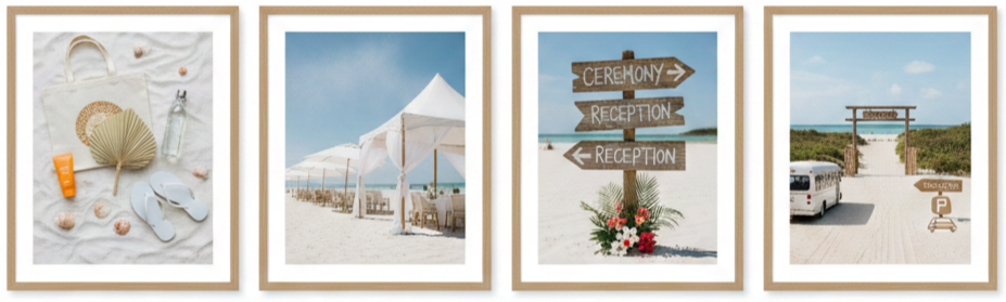 - Guest dress code: Let people know in advance that it’s a beach event. Recommend breathable clothes and casual footwear.