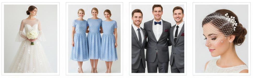 - Veils and Hair Accessories: Birdcage veils, dotted combs, or pearl-like dot pins bring vintage charm to modern looks.