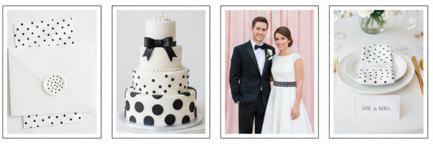 Polka dots bring an upbeat, stylish energy to wedding design, offering the perfect blend of charm and classic appeal. They work beautifully whether you’re planning a modern chic wedding or something a bit more vintage. Polka dots also integrate smoothly into almost any detail—from clothing to stationery—giving you plenty of room to personalize your theme without feeling limited.
