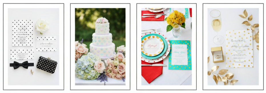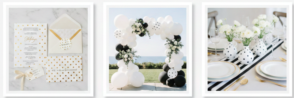 - Save-the-Dates: Pastel or metallic dot accents give guests an early hint of your wedding theme.