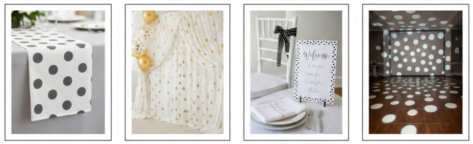 - Lighting Design: Light projections with polka dot shapes create a fun pattern effect on walls or dance floors.