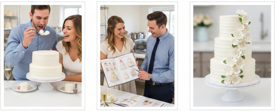 - Book early: Schedule your tasting and design consultation as soon as your date and venue are confirmed. This is especially important for spring and fall weddings.