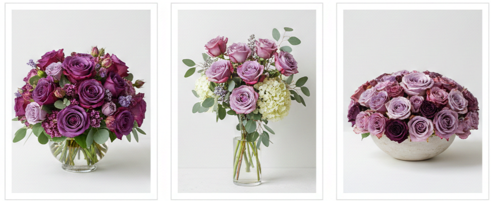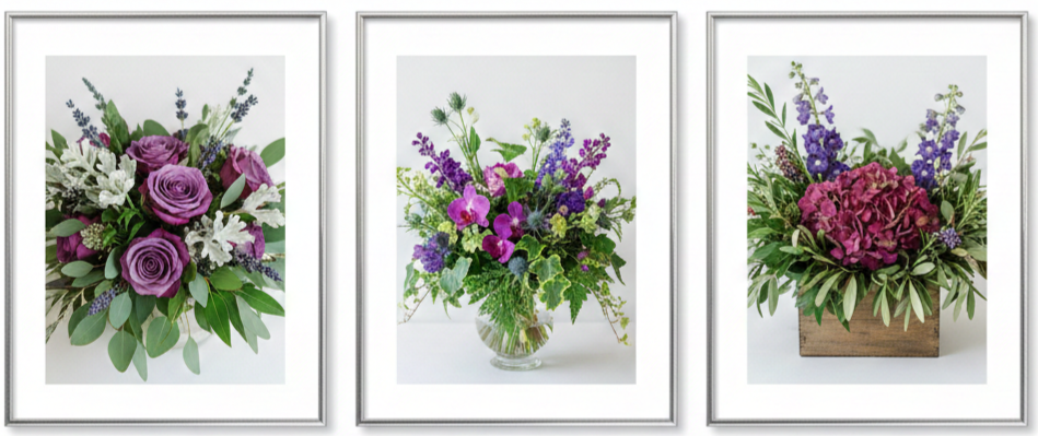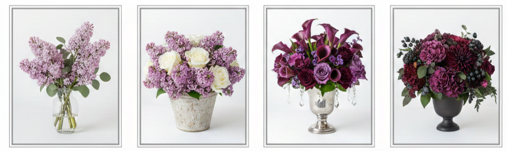 - Select your flowers—pick 2–3 purple varieties and filler greens.