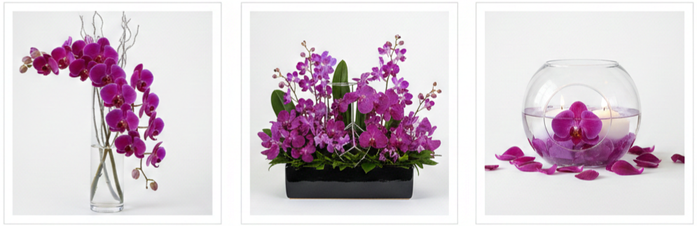 - Modern Minimalist: Clean lines, single-stem orchids, geometric vases.