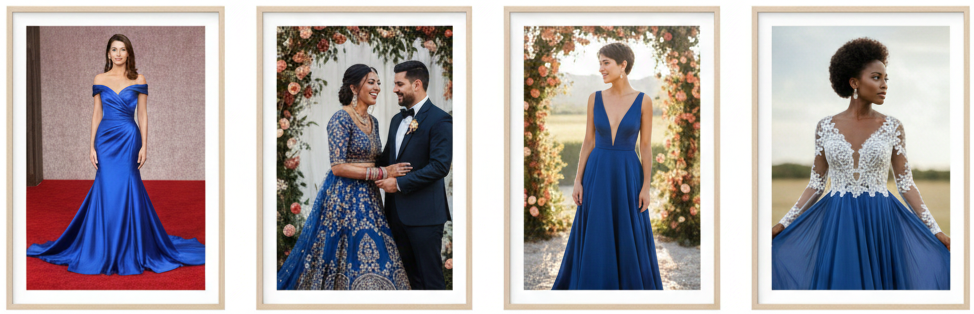 Some brides choose royal blue to honor cultural traditions in which bold bridal colors symbolize joy and prosperity. Others pick it simply because it expresses who they are. Bridal magazines and online wedding galleries often feature royal blue dresses as standout elements of non-traditional celebrations. Each example helps brides imagine the color’s beauty in their own unique way.