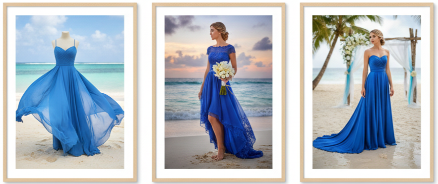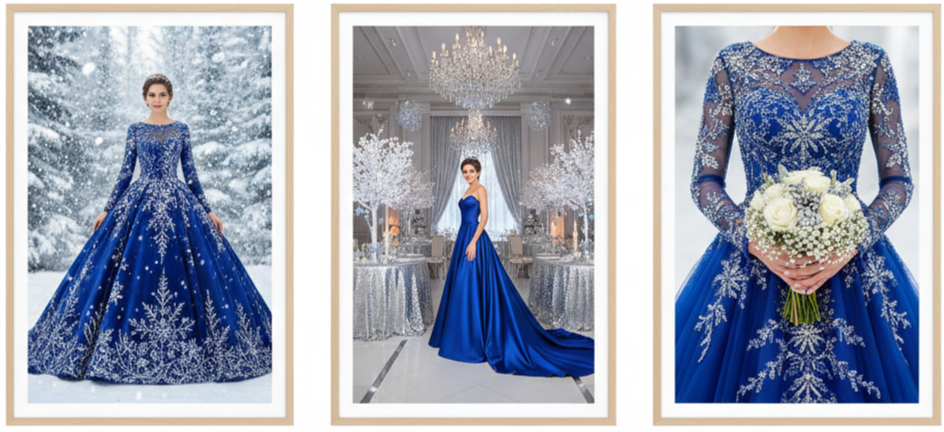 - Professional Dyeing: Transforming a white gown into royal blue is possible when done by specialists who work with bridal fabrics.
