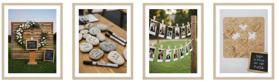 - Guestbook Alternatives: Wooden hearts, stones, puzzle pieces