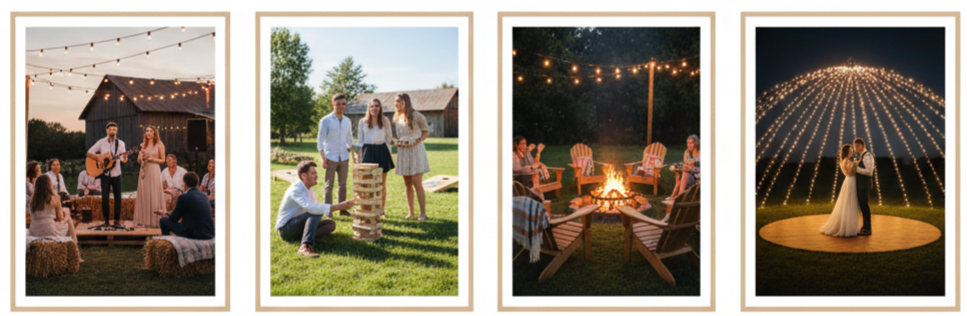Rustic weddings thrive on movement, interaction, and comfort, and these activities enhance the experience.