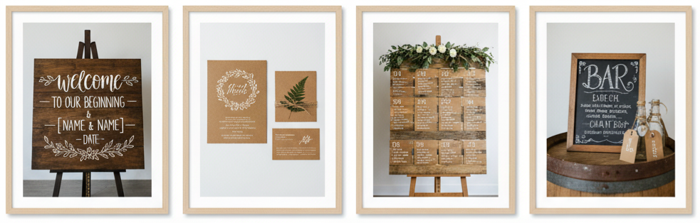 - For what: Menus, welcome signs, seating charts, and bar directions.