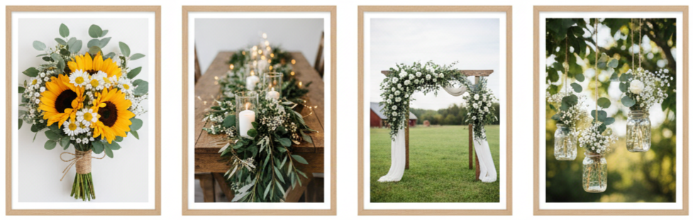 | Flower/Greenery | Best Use | Why It Fits Rustic Style |