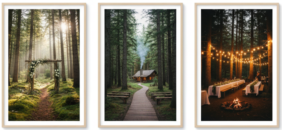 | Forest | Intimate ceremonies | Trees, natural light | Spring–Fall | Needs weather plan |
