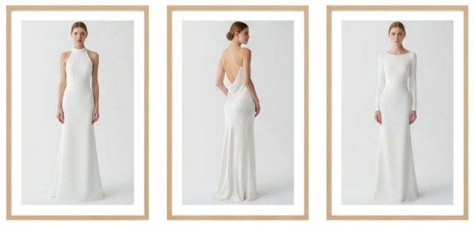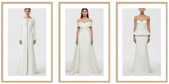 Minimalist gowns are now widely available from designers, boutiques, and online shops. Many brides start with online retailers known for modern, clean styles. Stores like Reformation, BHLDN, Grace Loves Lace, and Amsale offer a wide range of simple and chic gowns.