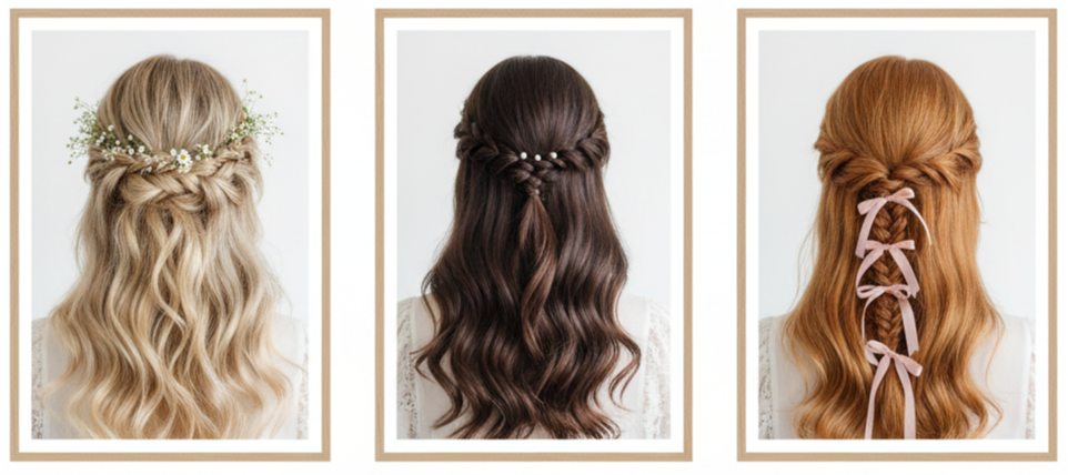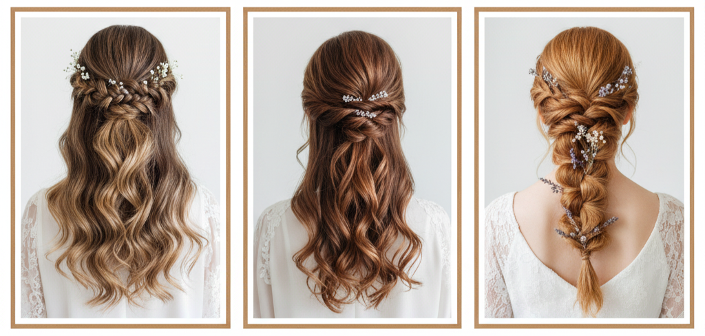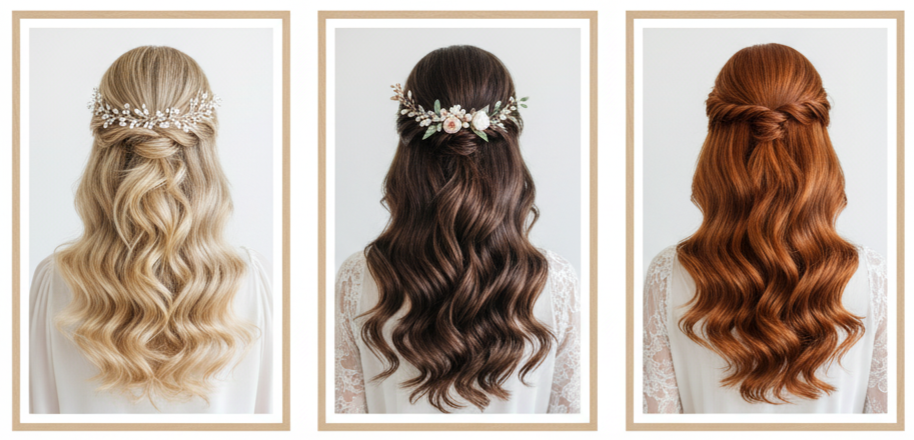 Key Takeaway: Half up half down hairstyles are timeless, versatile, and customizable. They work with all hair types and wedding styles, giving brides the ability to create an elegant, natural, and lasting look that perfectly complements their special day.