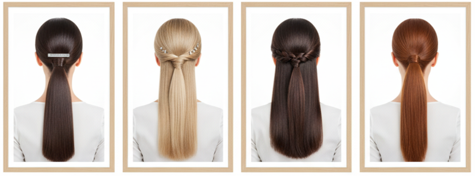 Straightened, smooth hair offers a modern and refined appearance. Minimalist styling emphasizes clean lines, symmetry, and a polished finish. This approach works well for contemporary, formal weddings and provides a striking contrast to intricate lace or detailed dress designs. Combining sleek hair with subtle volume at the crown ensures elegance without losing softness.