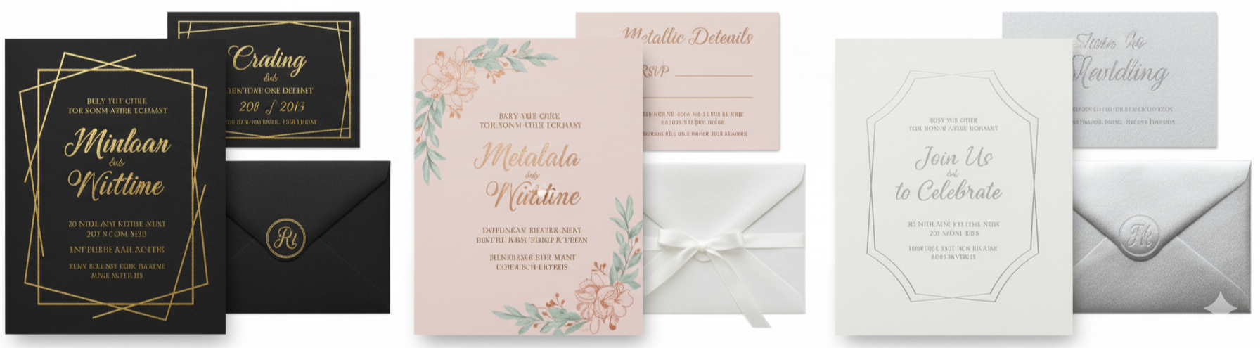 - Styling idea: Pair foil accents with heavy cardstock or velvet envelopes for an upscale presentation.