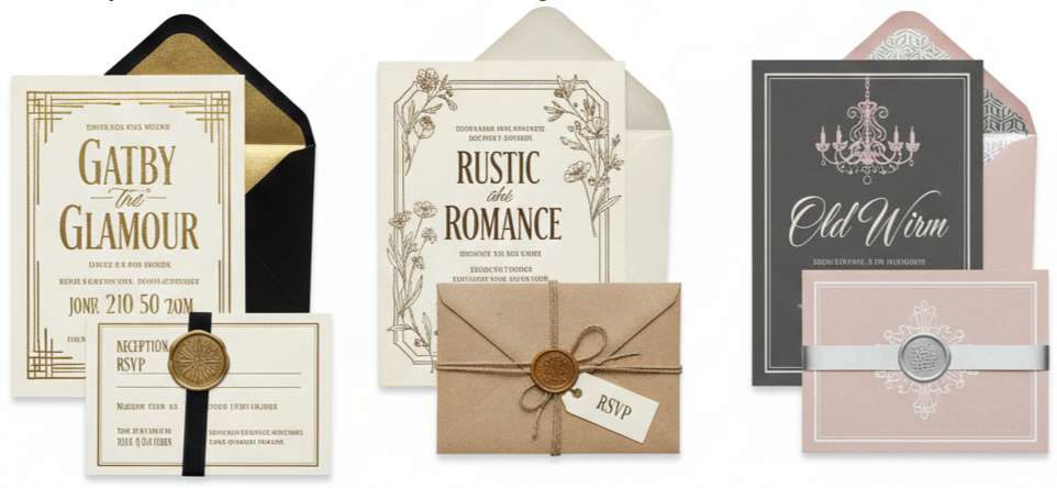 - Popular themes: Gatsby-style celebrations, rustic vintage receptions, and art deco soirées.