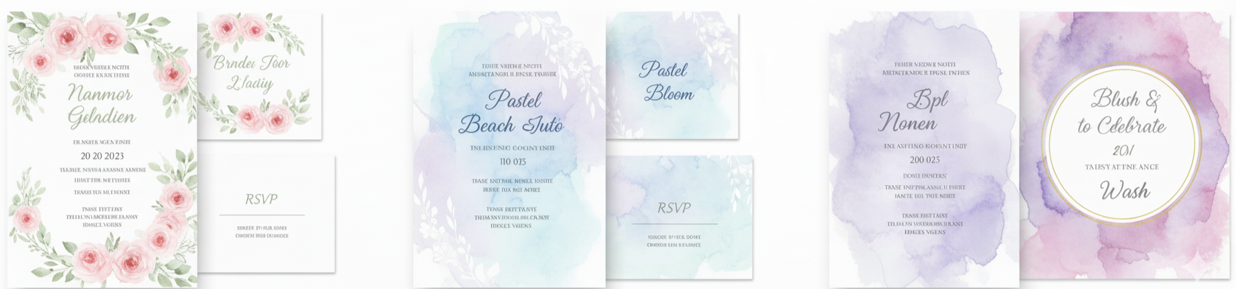 - Design tip: Use matching RSVP and detail cards with similar watercolor patterns to tie the theme together.