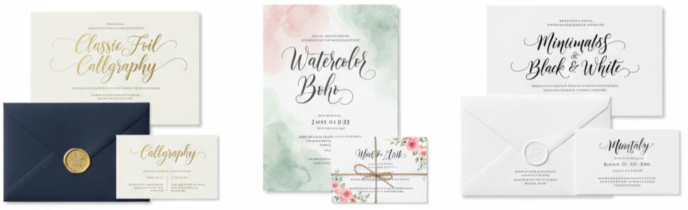 | Metallic Foil Accents | Formal & Glam | Gold or rose gold foil lettering |