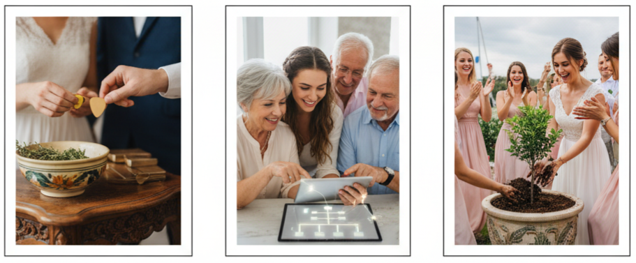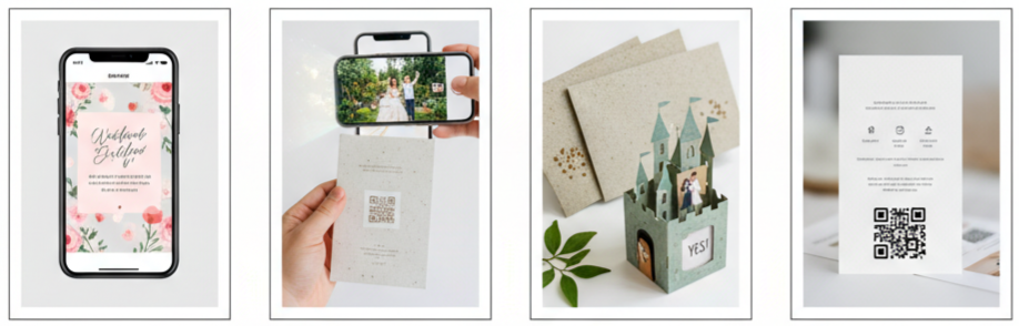 Couples are choosing digital invites, videos, AR experiences, or using eco-friendly materials like seed paper and bamboo to keep things sustainable and stylish.