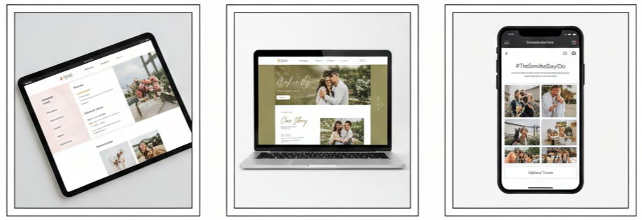 - Match the Aesthetic: Don’t forget to carry your wedding style onto your site. Match your colors, fonts, and vibe so it feels consistent from the invite to the final dance. Use engagement photos or custom illustrations to give the site personality.