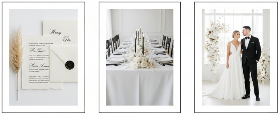 Less is more, and minimalist weddings prove it. With clean lines, neutral color palettes, and intentional details, these weddings feel calm and sophisticated. Instead of over-the-top decor, couples opt for black flatware, white linens, soft lighting, and a few well-placed floral accents that keep the vibe elegant but effortless.