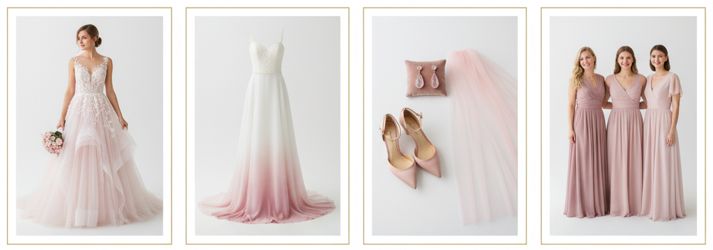 - Statement Accessories: Small details make a big impact. Rose quartz earrings, blush-toned heels, and even a pink veil can elevate your entire look.