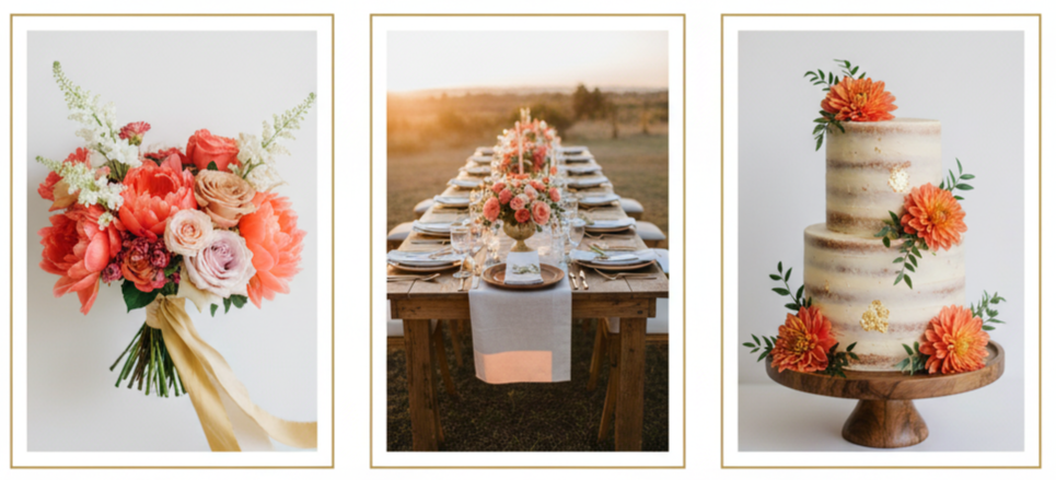 These warmer shades bring a cheerful, beachy feel that fits perfectly with boho or destination weddings. Combine them with gold or natural wood accents for a balanced and warm palette.