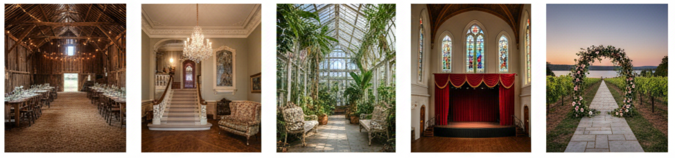 Key tip: A venue with built-in character helps your wedding feel naturally vintage without needing excessive decoration.