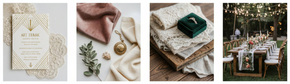 A cohesive look ensures that your vintage wedding feels authentic and beautifully curated from start to finish.