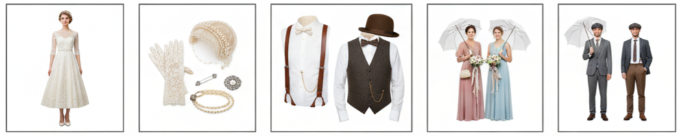 Every outfit detail plays a role in keeping the vintage vibe alive throughout your event.