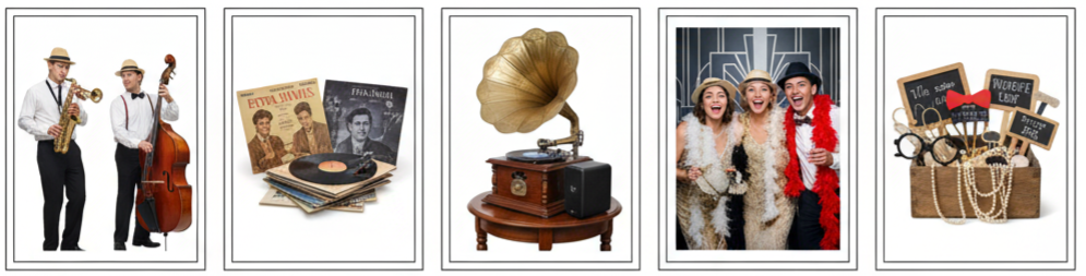 - Live Bands: Choose swing, jazz, or classical quartets for 1920s–1940s weddings. Rockabilly or doo-wop groups are great for 1950s themes.