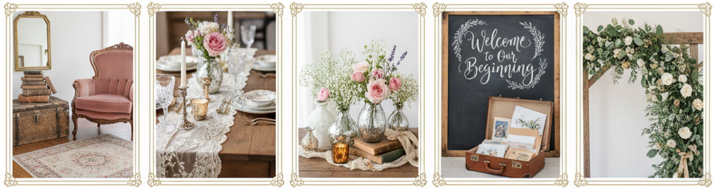 Yes. Thrift stores, flea markets, and borrowed family items are great for finding vintage decor. DIY touches like handwritten signs or homemade favors also help save money.