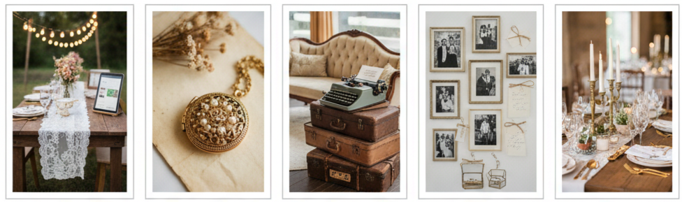 - Pick Key Details to Highlight: Focus on a few standout vintage pieces—like an heirloom necklace, a statement lounge area, or a typewriter guestbook—without overwhelming the space.