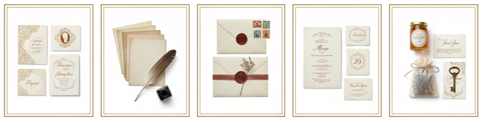 - Design Elements: Letterpress, calligraphy, lace motifs, cameo silhouettes, and vintage frames look elegant and timeless.